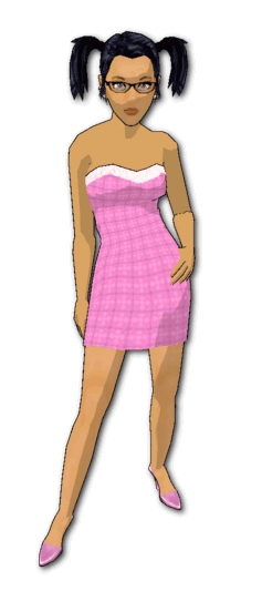f_Pigtails_Caramel_Pink Strapless_Lavender Pumps
